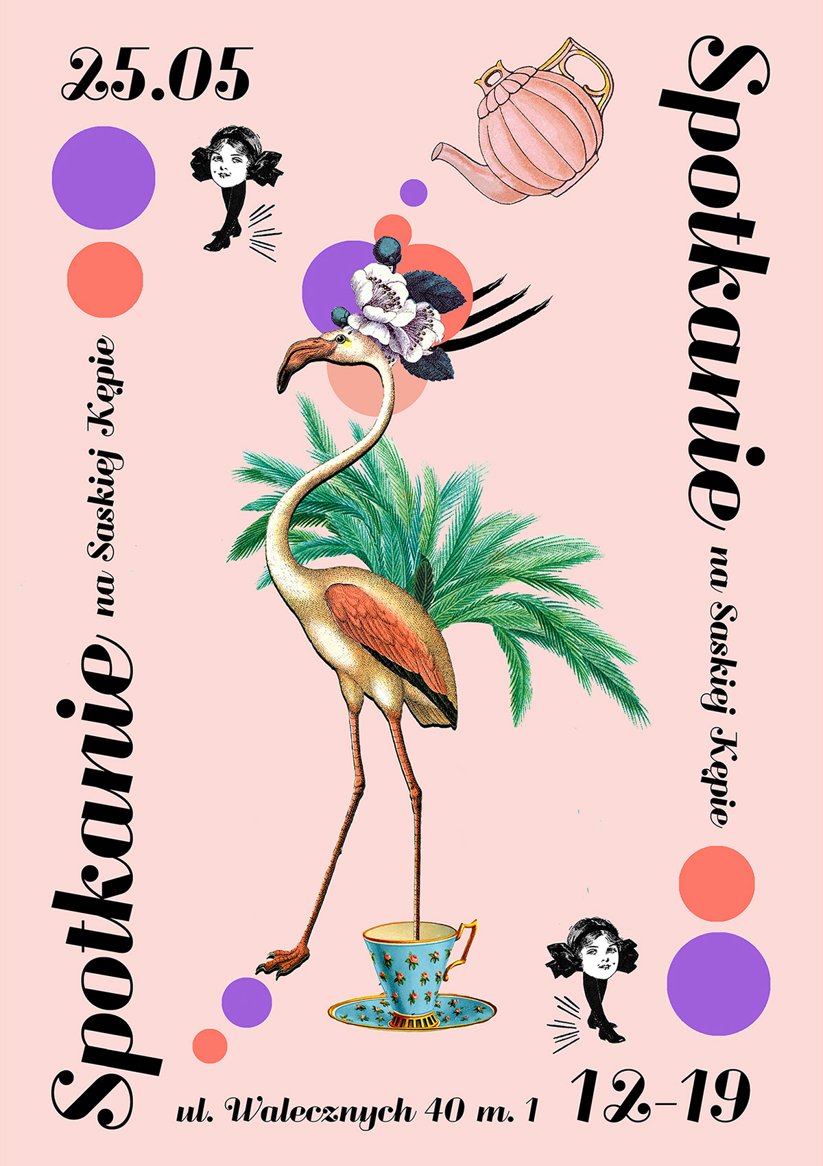 Poster for event at my studio on Saska Kępa. It was the meeting of artist with people from neighbourhood. We present our art pieces serving coffee and home made cake. The Meeting took place during Saska Kępa Day. The event was posted on social media, the posters were located in different places in Warsaw.
